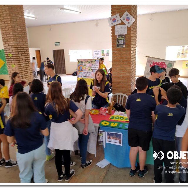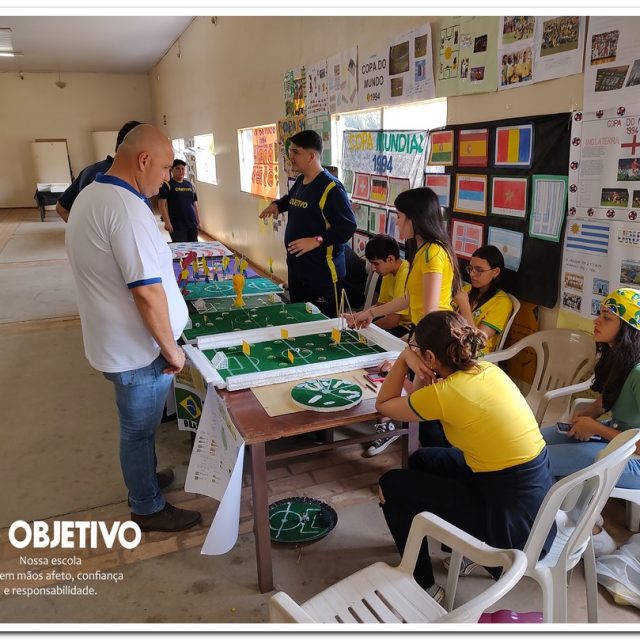 Os alunos do ensino médio preparam quiz com perguntas para testar os conhecimentos dos presentes sobre a história das copas.