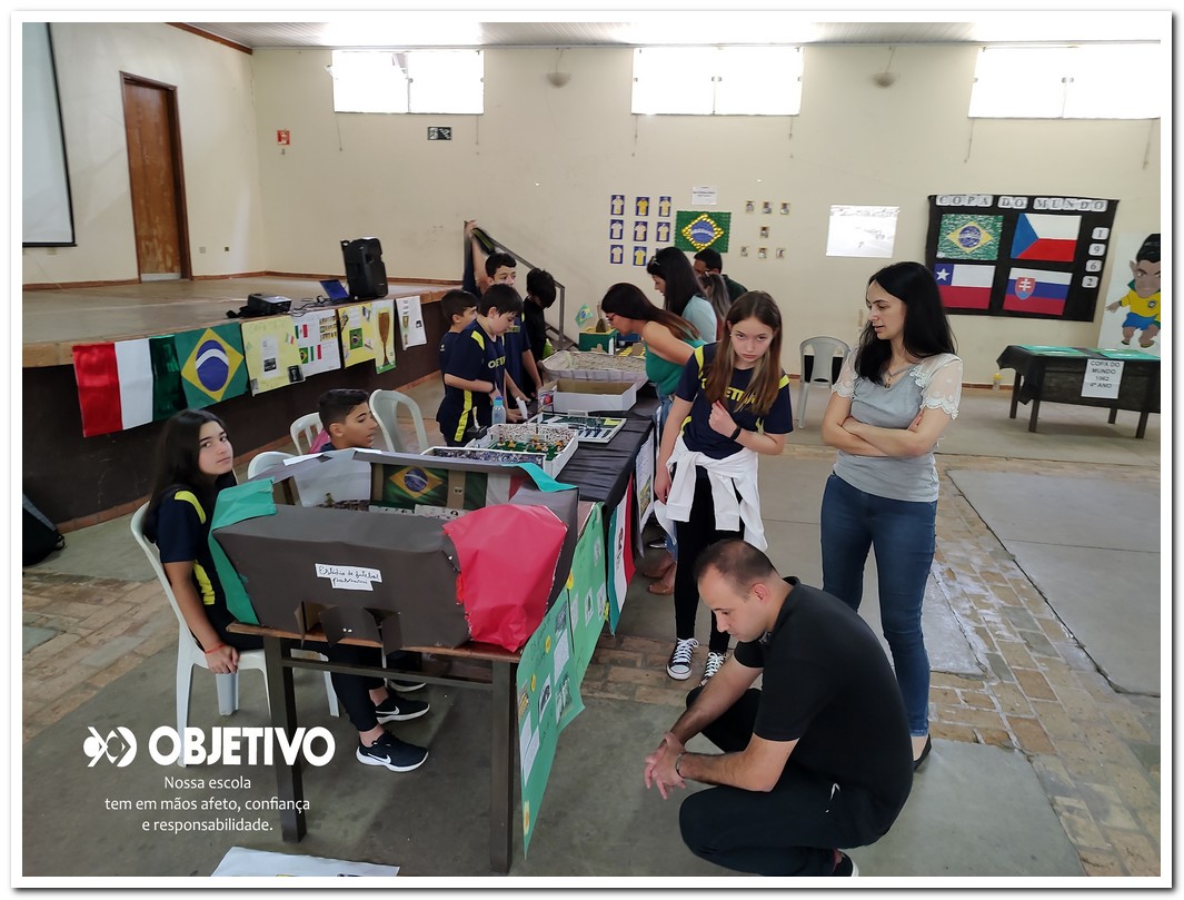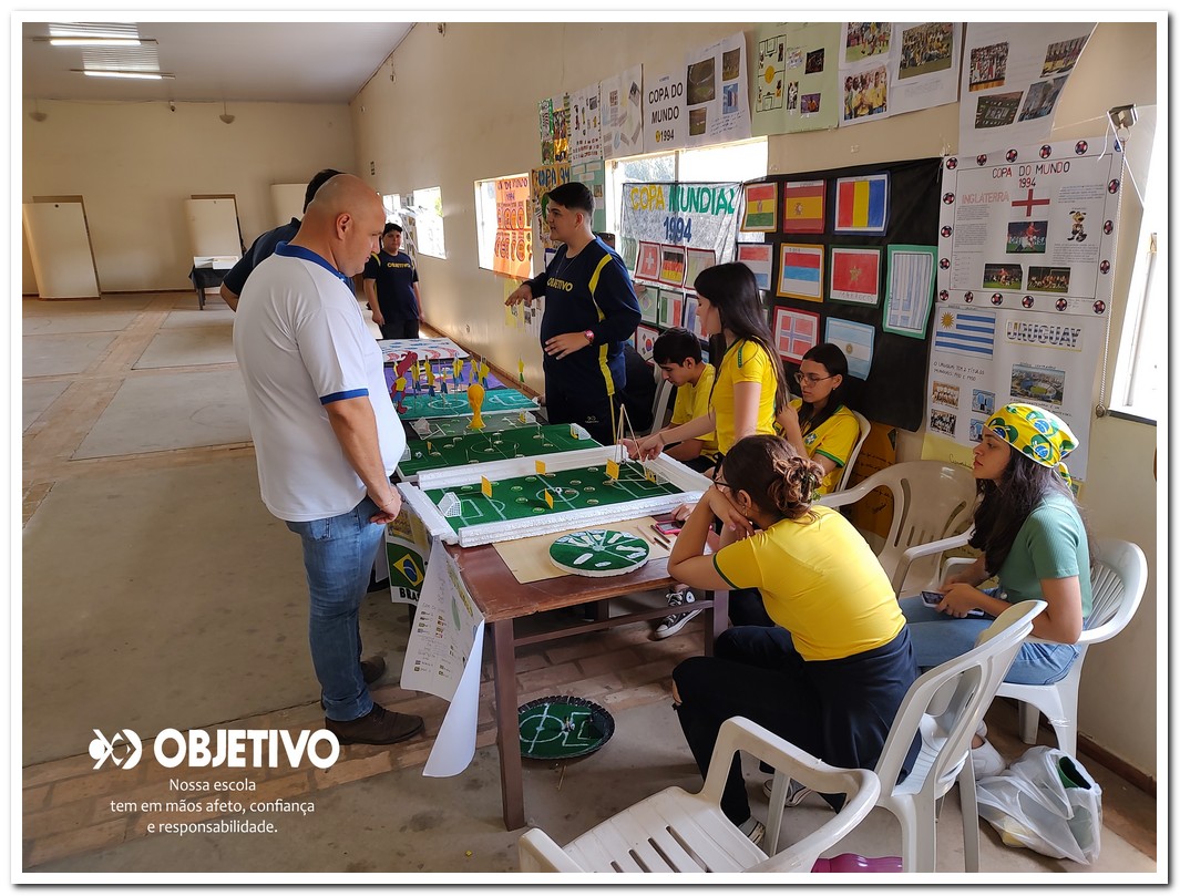 Os alunos do ensino médio preparam quiz com perguntas para testar os conhecimentos dos presentes sobre a história das copas.