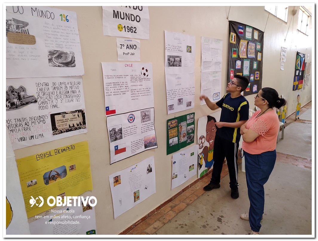 Vários trabalhos expostos nos ensinam sobre a história da Copa de Mundo, e também nos ajudam a entender a matemática, a física e a química presente nos gramados.