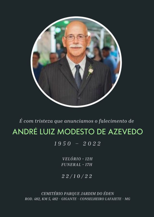 Faleceu aos 72 anos, o Sr. André Luiz Modesto de Azevedo