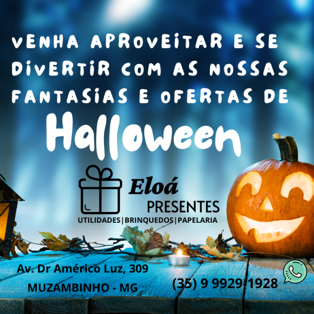 Mais Artigos DestaqueDiversos ONU confirma 2025 como terceiro ano mais quente da história DestaqueEsportesNossa Cidade Campeonato Municipal de Futebol de Campo volta a agitar Muzambinho neste fim de semana DestaqueEsportesNossa Cidade SELCT adia início das Olimpíadas 2026 e prorroga inscrições até 19 de janeiroDestaqueParceirosHalloween na Eloá Presentes, fantasias, acessórios e maquiagens; venha conferir! Redação27 de outubro de 20221min0 Fantasias, acessórios e maquiagens para animar o seu Halloween você encontra aqui na Eloá PresentesEntre em contato conosco (35) 9 9929-1928 Post Views: 950Festahalloween