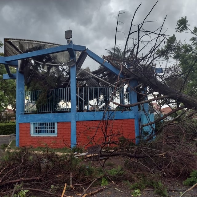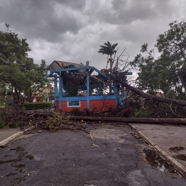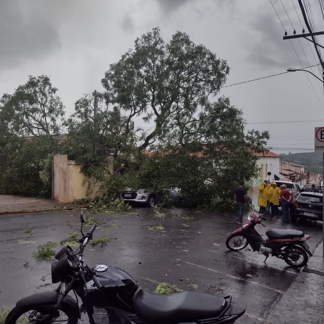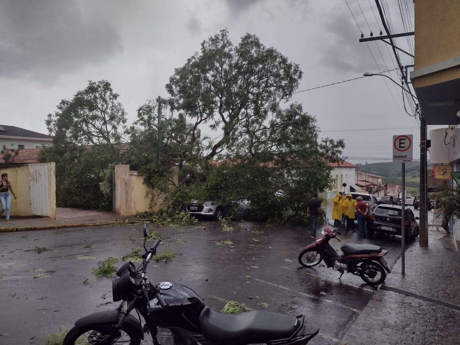 Chuva com ventos fortes causaram destruição em Muzambinho nesta quarta-feira; veja fotos e vídeo