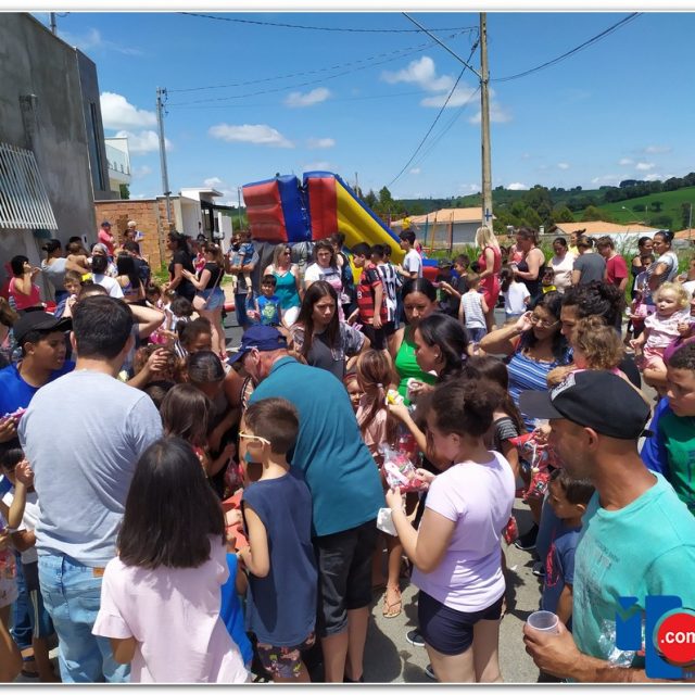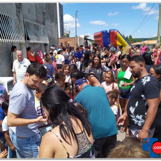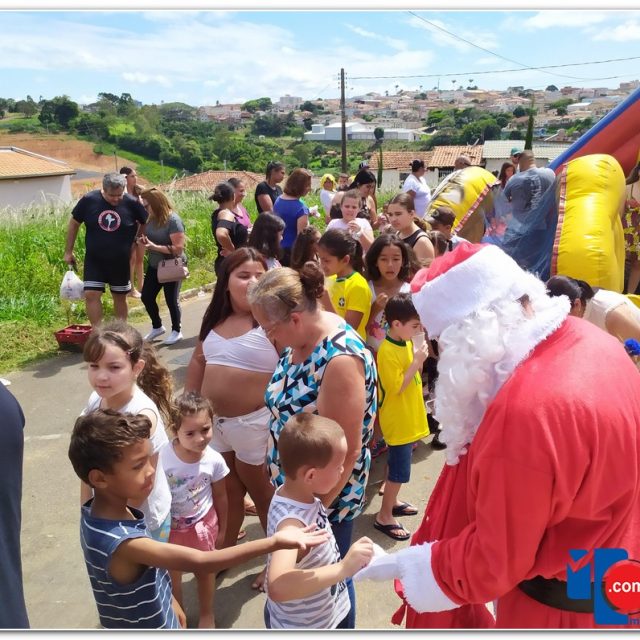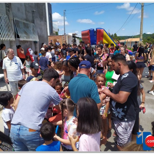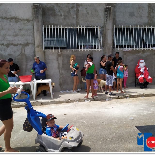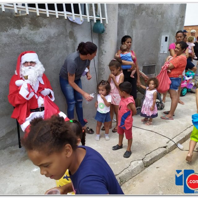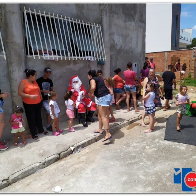 Além dos brinquedos foram distribuídos: lanches, refrigerante, pipoca e sorvete, além da presença do “Papai Noel” que abraçou as crianças e distribuiu presentes.
