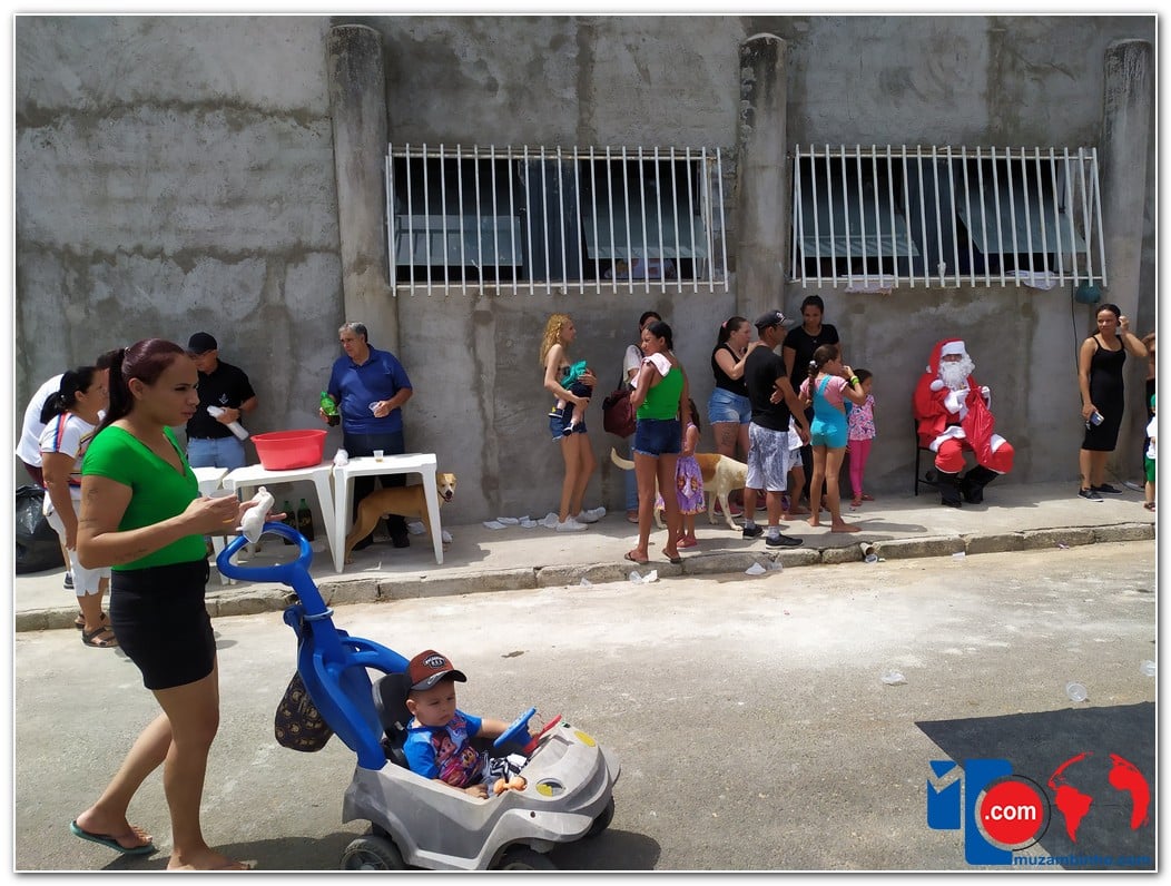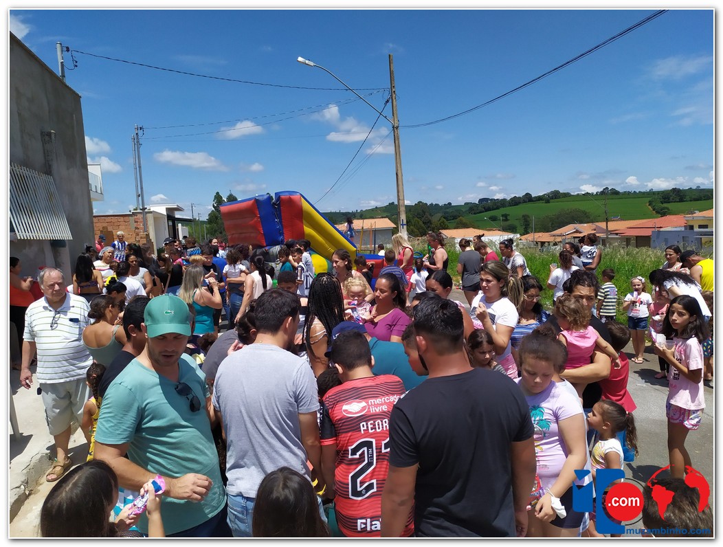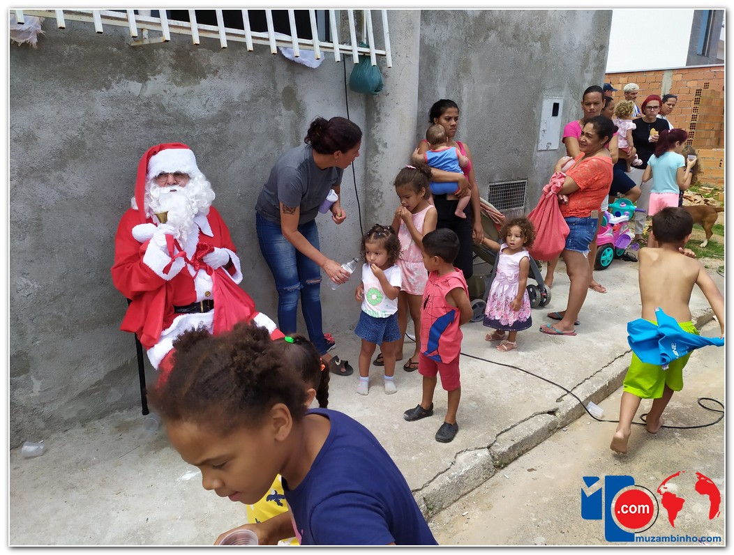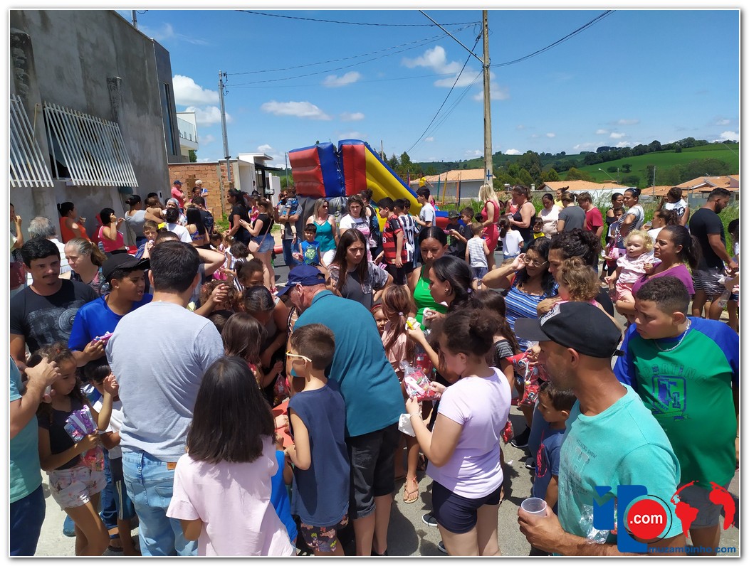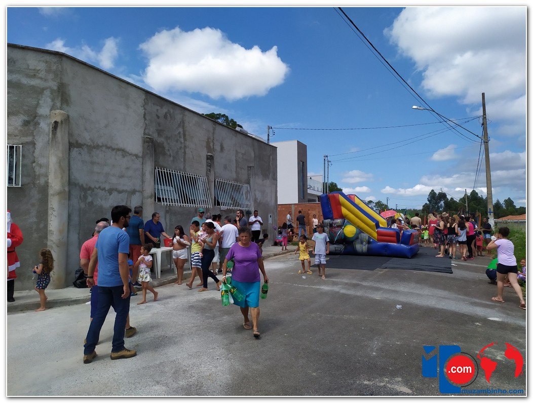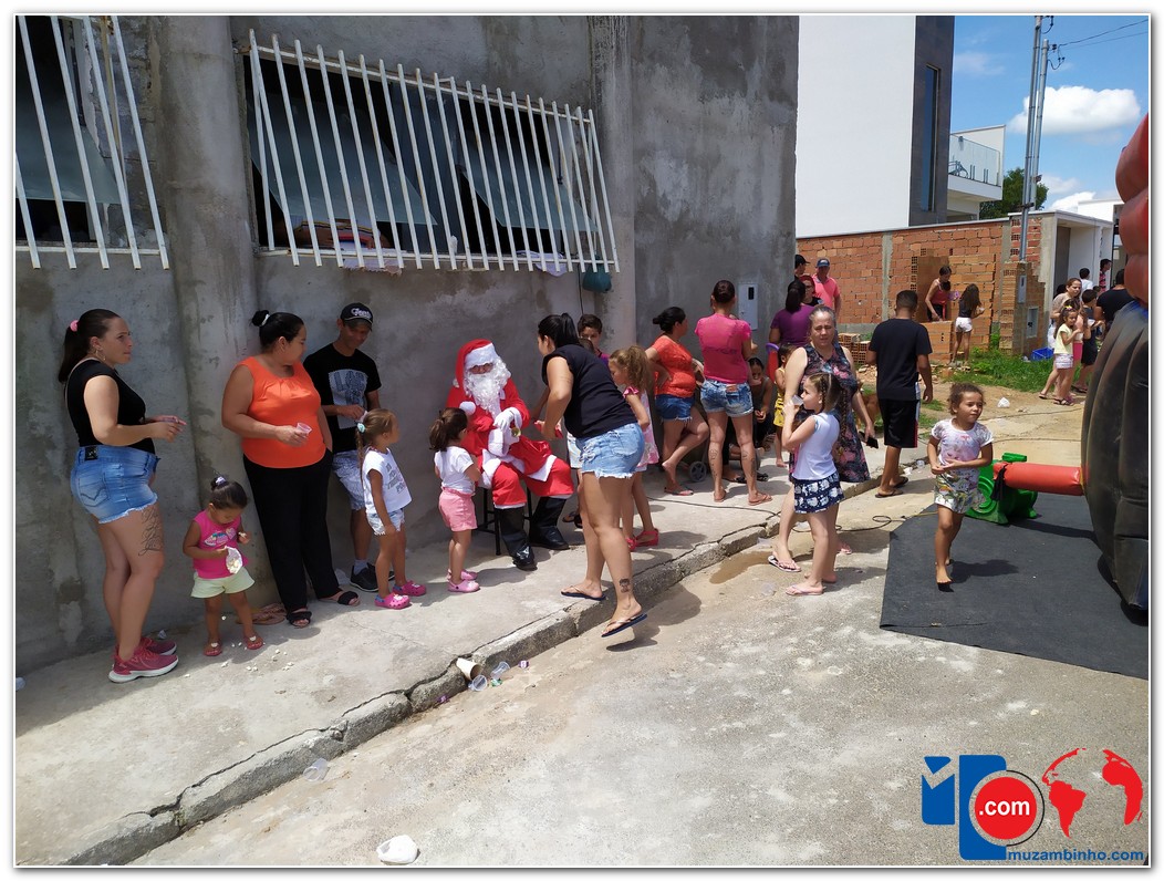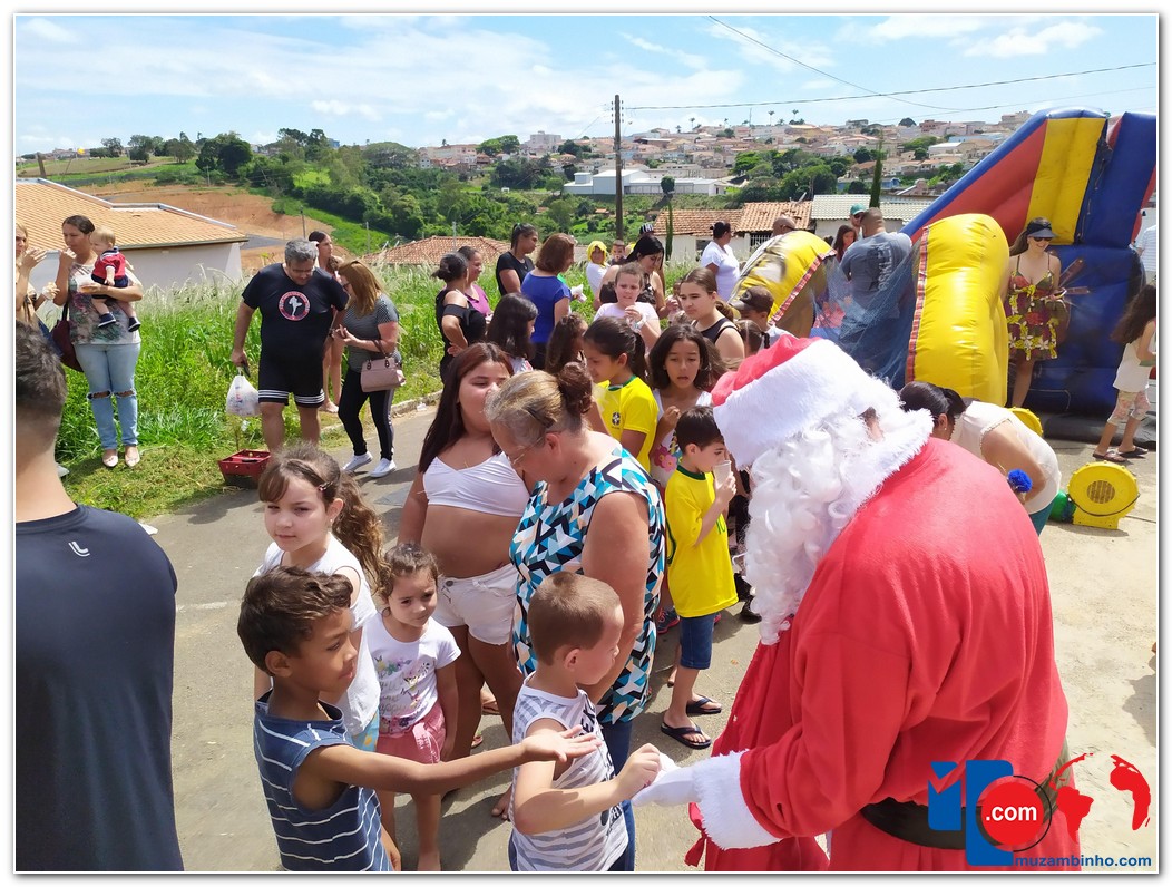 Além dos brinquedos foram distribuídos: lanches, refrigerante, pipoca e sorvete, além da presença do “Papai Noel” que abraçou as crianças e distribuiu presentes.