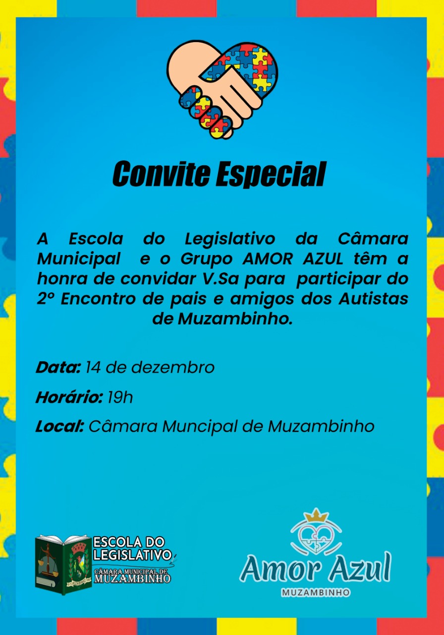 O evento aconteceu no Plenário da Câmara de Vereadores de Muzambinho, na noite desta quarta-feira, 14/12, e contou com a presença dos pais e amigos dos Autistas, além de vereadores, colaboradores e um grupo de “aventureiros”, os “roias”, que tem apoiado o grupo “Amor Azul”. Várias atividades tem sido desenvolvida através destas parcerias com apoiadores.