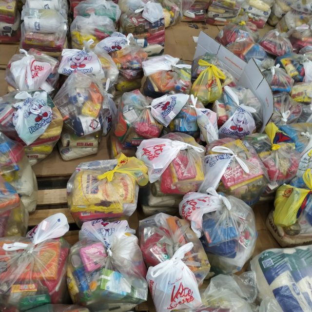 Desta forma, o Comitê entregou, nos últimos dias, cerca de 150 cestas básicas. Foram mais de 2 toneladas de alimentos e produtos básicos distribuídos, além de panetones e bolas para as crianças!