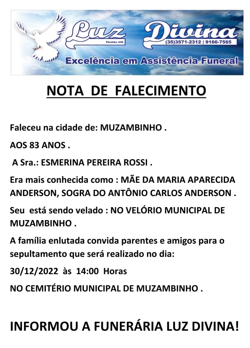 Mais Artigos DestaqueObituário Faleceu aos 77 anos a Sra. Marina de Jesus Silva AniversáriosDestaqueNossa CidadeParceiros Ingrid e Marcelo Rosa celebram aniversários com almoço especial em Muzambinho BelezaDestaqueNossa CidadeParceiros Zahra Cosméticos e Studio Nayara Moraes chega ao Centro de Muzambinho com novidades em beleza e bem-estarDestaqueObituárioFaleceu aos 83 anos, a Sra. Esmerina Pereira Rosa Redação30 de dezembro de 20221min0Informou a Funerária Luz DivinaA família enlutada, nossos sinceros sentimentos de pesares, que Deus os abençoe e conforte. Post Views: 638EnterroFuneráriaLuz DivinamorteobituárioSepultamentoVelório