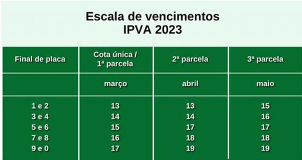 O pagamento varia de acordo com o número final da placa do veículo. O contribuinte poderá parcelar o pagamento do imposto em três parcelas.