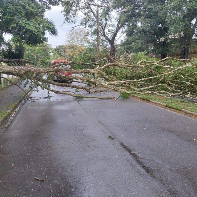 A árvore de grande porte caiu em razão das chuvas por volta das 16h desse sábado (21), na Avenida Felipe Elias Zeitunem entre os bairros Novo Horizonte e Vila Santa Bárbara. Além de interditar as duas vias com sua queda, a árvore também rompeu a fiação da rede de iluminação pública deixando as duas vias da avenida interditada e os bairros próximos sem energia elétrica.