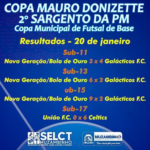 Hoje, 23/01, tem jogos da Copa Mauro Donizette – 2° Sargento da PM
