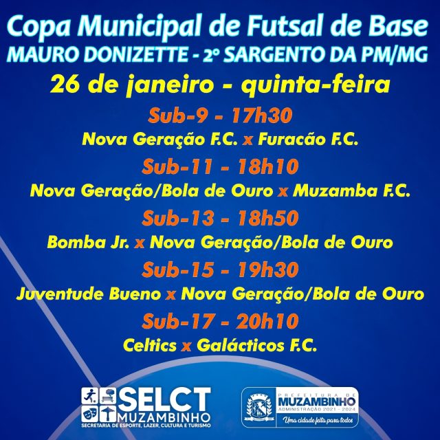 Jogos desta quinta-feira, 26/01, dos Campeonatos em Muzambinho