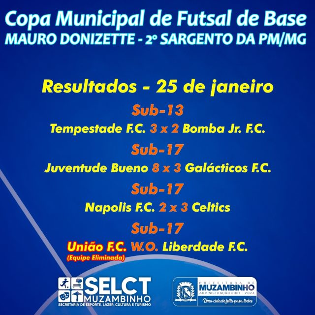 Acesse e Confira resultados e jogos: Campeonato Regional de Futsal e Copa Municipal de Futsal de Base 2023