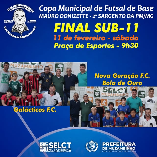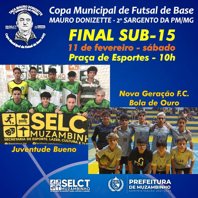 Sexta-feira, às 18h30 ocorrerá a final do Sub-13 e no sábado (11/02) a partir das 8h acontecerão as finais do Sub – 9 / 11 / 15 / 17, e abrindo os jogos no sábado teremos dois amistosos de futsal feminino (Sub-13 e Sub-17).