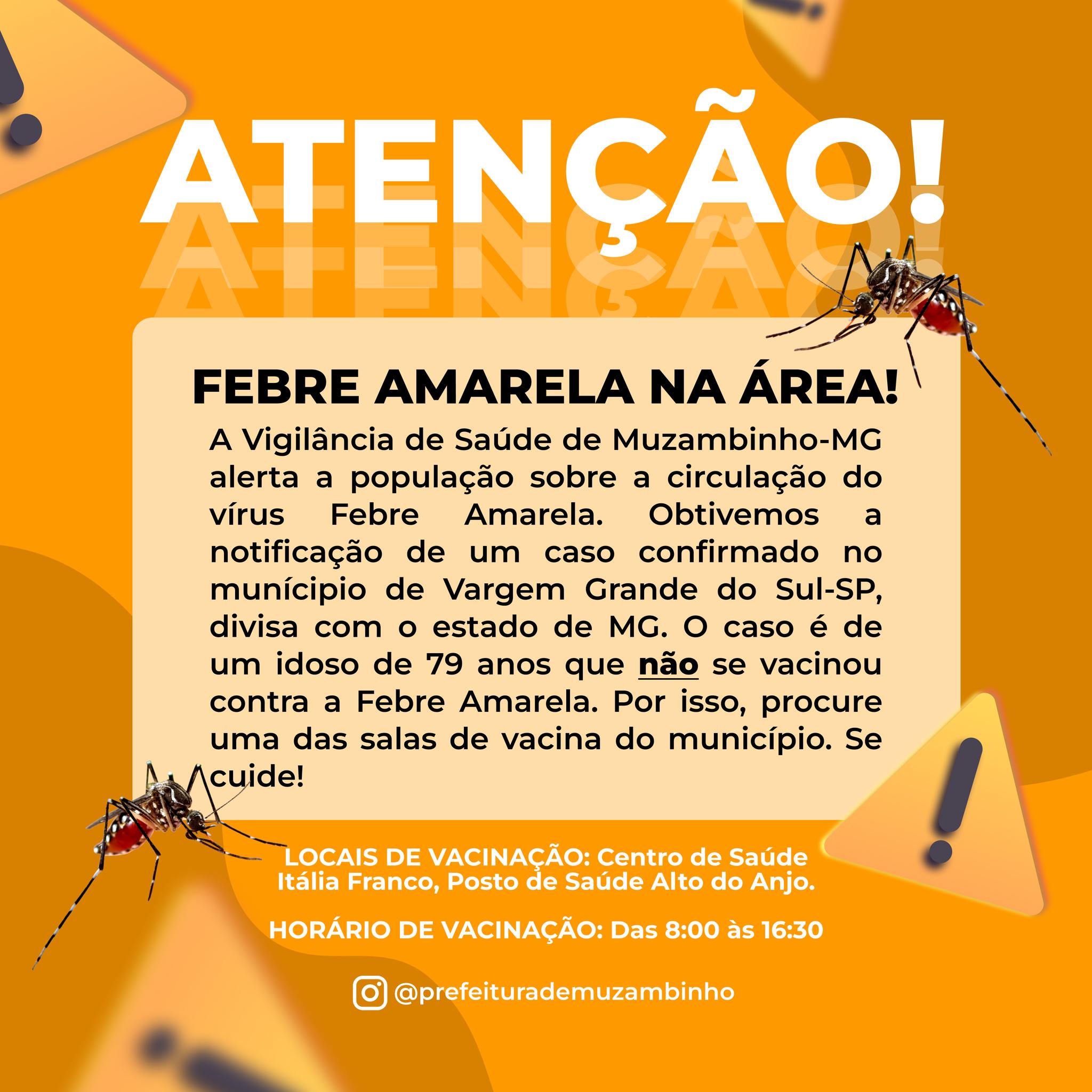 Vigilância de Saúde de Muzambinho alerta para circulação de Febre Amarela no município