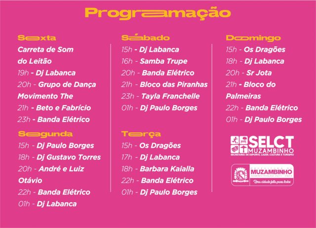 Com uma programação eclética, o Carnaval de Muzambinho terá shows ao vivo com artistas locais e nacionais, além de desfiles de blocos de rua. A Prefeitura está investindo em segurança, infraestrutura e entretenimento para garantir que o evento seja um sucesso e um momento inesquecível para todos os participantes.