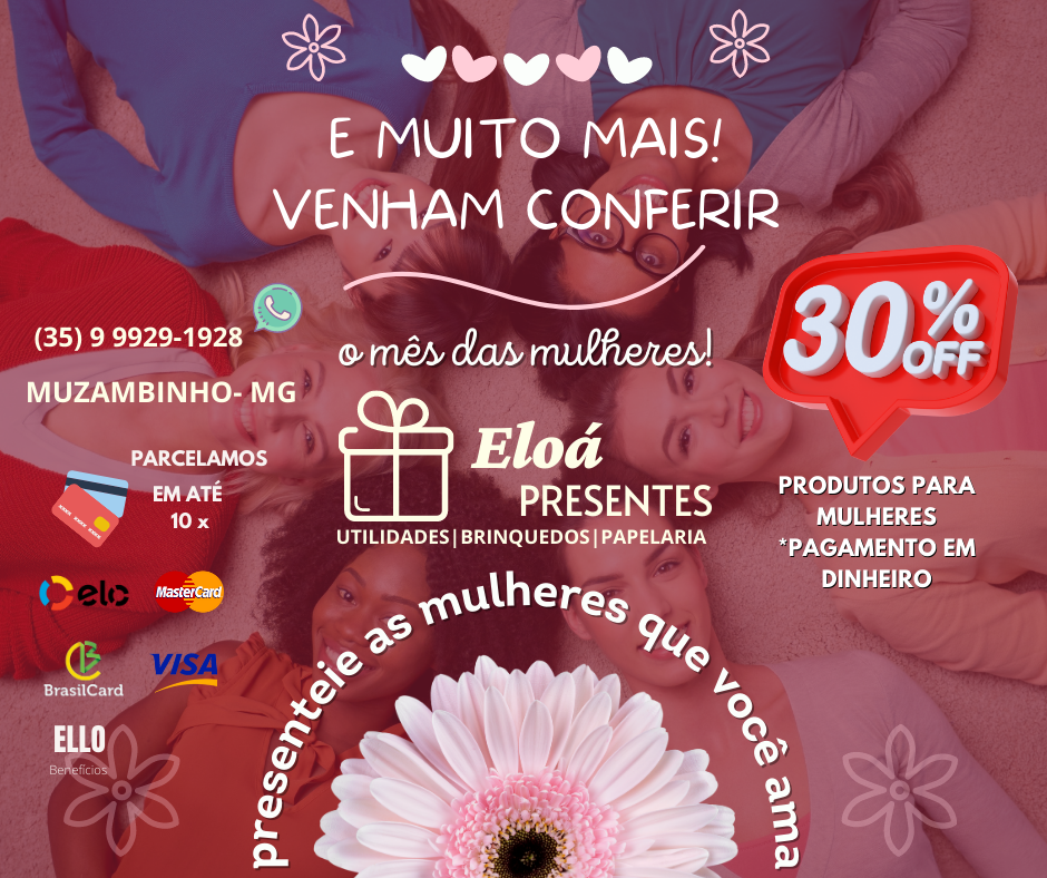 Mais Artigos DestaqueEventos e FestasNossa Cidade Emize Skate Festival chega à 5ª edição em novo espaço no Parque Colina DestaqueParceiros Sicredi terá horário diferenciado de atendimento no final do ano AgronegócioDestaqueNossa Cidade Projeto Campo Limpo recolhe mais de 5 toneladas de embalagens agrícolas na 2ª edição de 2025 em MuzambinhoDestaqueNossa CidadeParceirosMarço, no mês das Mulheres 30% off Redação8 de março de 20231min0 Eloá Presentes - Produtos para Mulheres!!! Post Views: 700Dia das MulheresEloámulheresPresentes