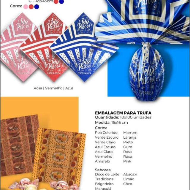 Sendo eles : embalagens para trufa, sacos express, suporte para ovo, etiqueta feliz Páscoa, kit confeiteiro e muito mais da melhor qualidade para você fazer aquele ovo de Páscoa delicioso!!!