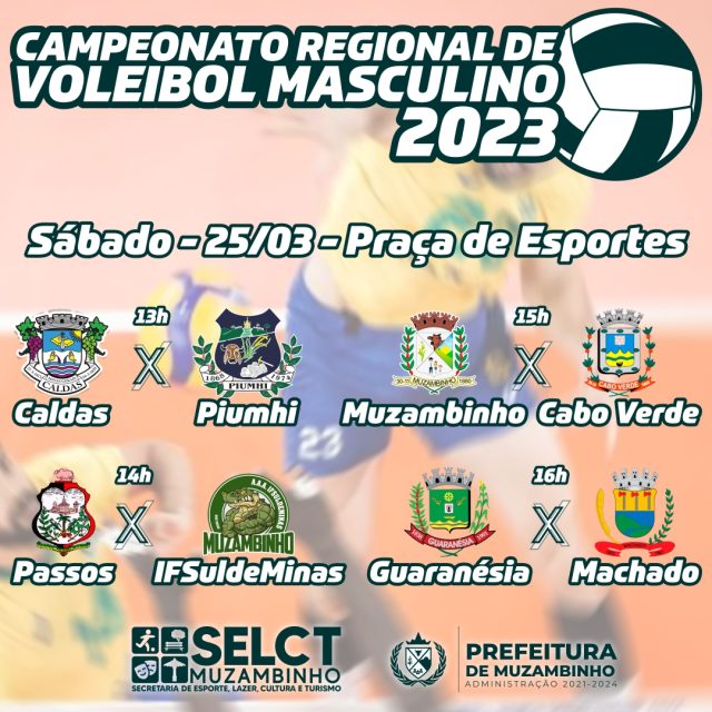 O campeonato é divido em dois grupos, Grupo A (Piumhi Tênis Clube, Cabo Verde, Muzambinho e Vôlei Caldas) e Grupo B (Guaranésia, A.A.A. IFSuldeMinas, Vôlei Passos e Volleyboll Machado). A disputa se iniciará com a etapa de grupos, onde os dois melhores de cada grupo prosseguem para a semifinal, e posteriormente para a disputa do 3º/4º lugar e a grande final, que ocorrerão no dia 29 de abril.