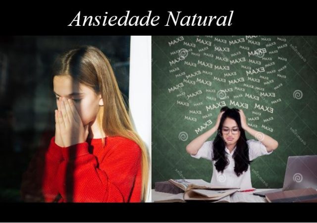 A ansiedade natural é aquela que dá colorido e sentido às nossas vidas. É o frio na barriga, o coração que dispara e a falta de ar, o suor frio etc… Surge no primeiro encontro amoroso, primeiro beijo na pessoa amada, no dia do casamento, primeiro dia de trabalho, primeiro discurso público, etc… É o medo do desconhecido, do imprevisível, do imponderável, e de tudo que nos surpreende! Dá o colorido às nossas vidas, ao fazer parte do dia a dia.