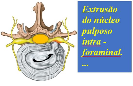 • Sequestrado (intraforaminal, compressão mecânica do nervo).