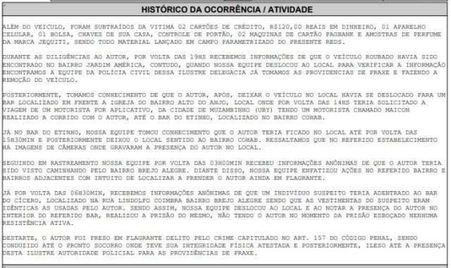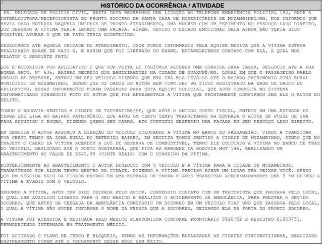 Abaixo Histórico do Boletim de Ocorrência: