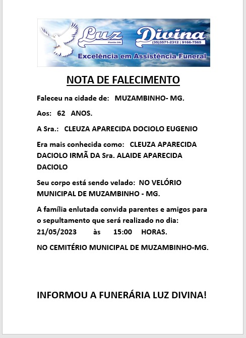 Mais Artigos DestaqueObituário Faleceu aos 84 anos o Sr. Cesarino Tristão Silvério DestaqueObituário Faleceu aos 78 anos a Sra. Maria José Bezerra DestaqueObituário Faleceu aos 71 anos o Sr. Antônio de LimaObituárioFaleceu aos 62 anos, a Sra. Cleuza Aparecida Daciolo Eugenio Redação21 de maio de 20231min0Informou a Funerária Luz DivinaA família enlutada, nossos sinceros sentimentos de pesares, que Deus os abençoe e conforte. Post Views: 756EnterroFuneráriaLuz DivinamorteobituárioSepultamentoVelório