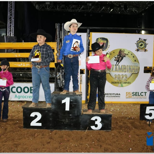 No domingo, 28 de maio, Muzambinho sediou uma emocionante final da competição de Prova dos Três Tambores, um evento que trouxe muita alegria e determinação aos competidores. O domingo foi marcado por uma atmosfera festiva, onde os participantes deram o seu melhor em busca da vitória. Após as apresentações de cada categoria, os competidores com os melhores tempos foram agraciados com merecidas premiações. A festa iniciou com a montaria em carneiros, que fez a alegria da criançada, esta iniciativa tem como objetivo despertar vontade de montar nos pequenos, já que os carneiros são mansos.