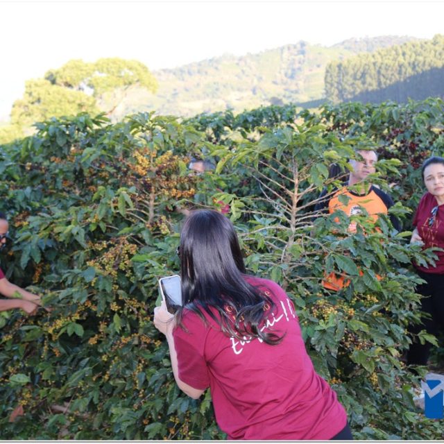 Enquanto percorriam as estradas rurais, os turistas foram contemplados com a deslumbrante vista das plantações de café, onde puderam interagir com os “panhadores de café”, que estavam colhendo os grãos à beira da estrada. Em um ponto elevado, um mirante proporcionou aos visitantes uma visão distante das belas paisagens de Minas Gerais e São Paulo.