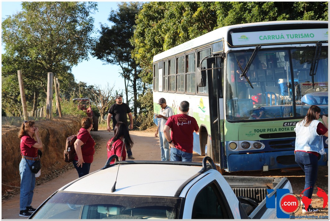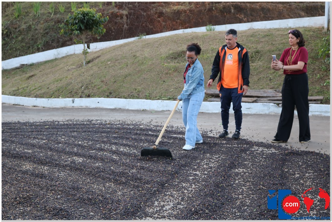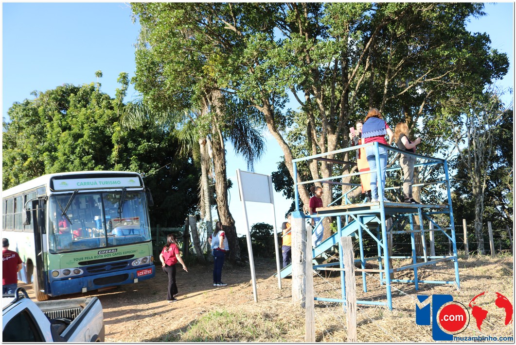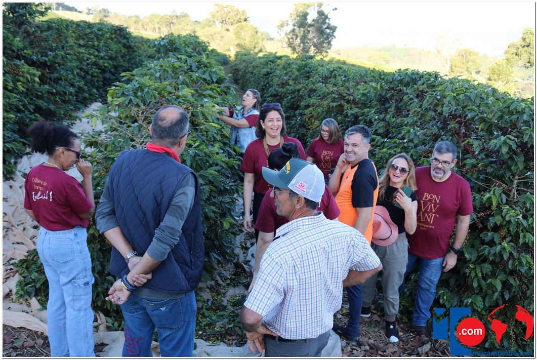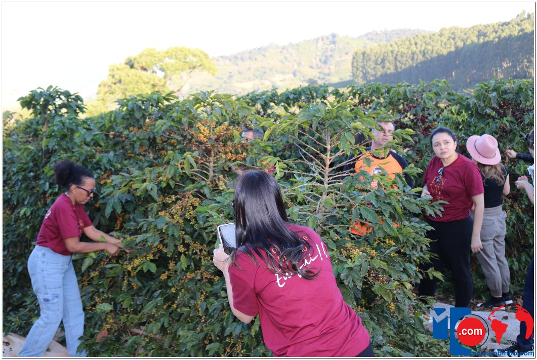 Enquanto percorriam as estradas rurais, os turistas foram contemplados com a deslumbrante vista das plantações de café, onde puderam interagir com os “panhadores de café”, que estavam colhendo os grãos à beira da estrada. Em um ponto elevado, um mirante proporcionou aos visitantes uma visão distante das belas paisagens de Minas Gerais e São Paulo.