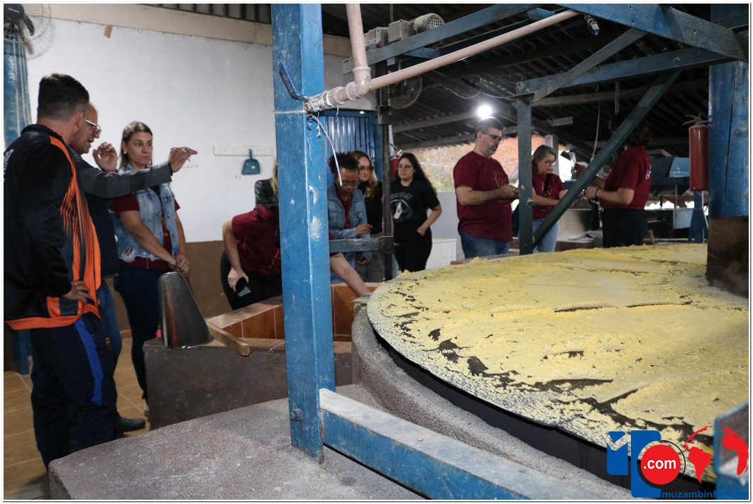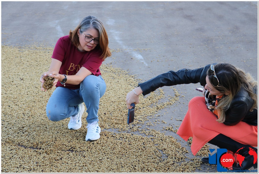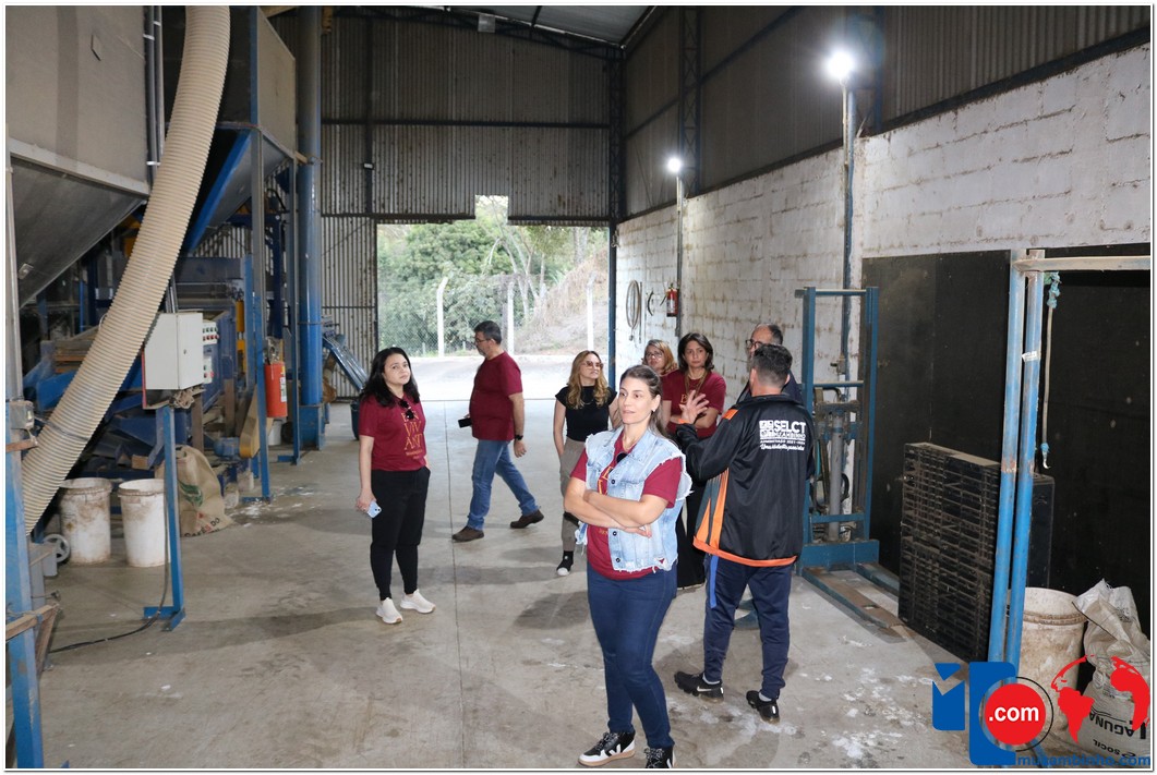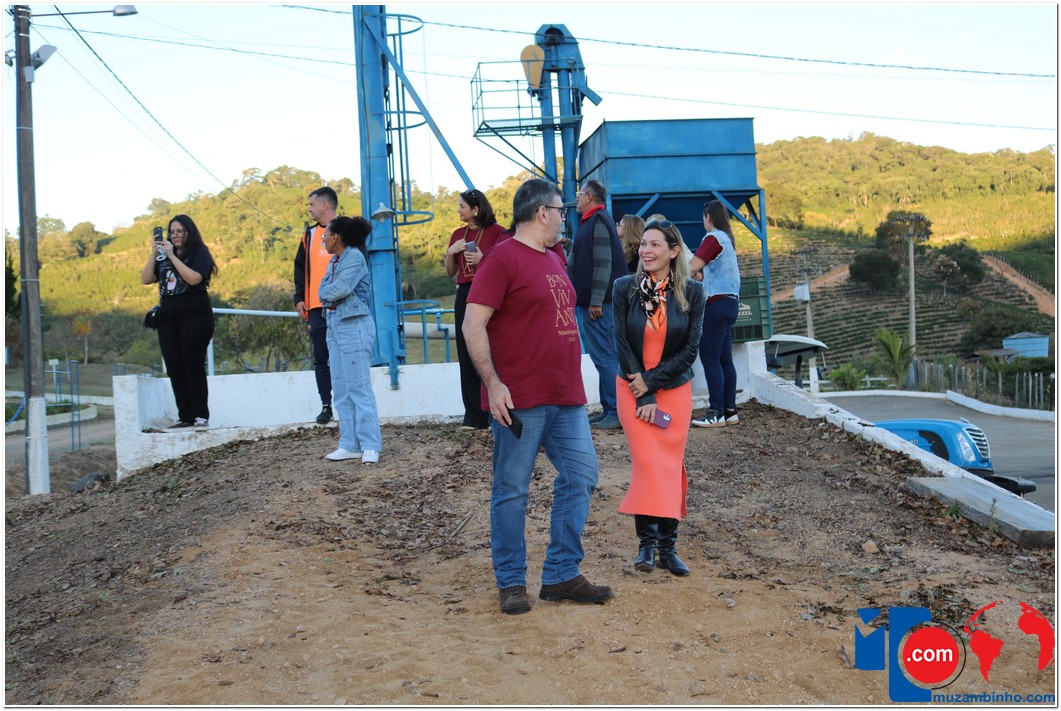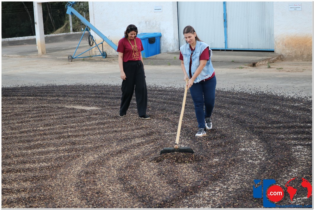 Ao chegar à sede da Agropecuária Santa Inês, os visitantes conheceram o lavador de café, onde ocorre a separação dos grãos, e tiveram a chance de “mexer” no café que estava em processo de secagem no Terreirão. Também tiveram a oportunidade de conhecer o secador de café e o processo de beneficiamento, além de presenciarem a torra artesanal da Farinha de Milho, outro produto produzido pela marca Carruá.