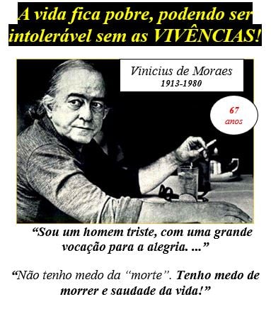 Vivenciar é valorizar cada segundo da nossa existência (vida), com experiências compartilhadas (AMIGOS). Isso fica mais evidente ao envelhecermos naturalmente e com gratidão pela vida vivenciada e compartilhada!