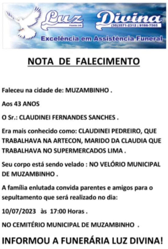 Mais Artigos DestaqueObituário Faleceu aos 50 anos a Sra. Valquiria Helena Pereira DestaqueObituário Faleceu aos 67 anos o Sr. José Pedro de Melo DestaqueObituário Faleceu aos 65 anos a Sra. Denise Aparecida Ribeiro FigueiredoObituárioFaleceu aos 43 anos, o Sr. Claudinei Fernandes Sanches Redação10 de julho de 20231min0Informou a Funerária Luz Divina A família enlutada, nossos sinceros sentimentos de pesares, que Deus os abençoe e conforte. Post Views: 835EnterroFuneráriaLuz DivinamorteobituárioSepultamentoVelório