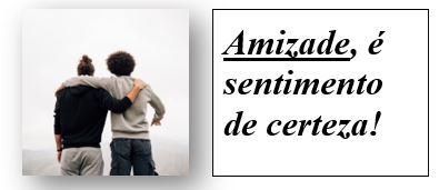 “Amizade não é magoar, é incentivar. Não é criticar, é apoiar. Não é humilhar, é defender. Não é julgar, é aceitar. Não é esquecer, é perdoar. Assim, a verdadeira amizade nos ajuda a crescer e sermos, cada vez mais, pessoas melhores.” É não ter dúvidas e poder contar com o amigo de olhos fechados. …