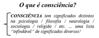 Consciência não é apenas chamar nossa atenção a um aspecto da vida. É muito mais; abrange nosso comportamento como um todo (sentimentos / pensamentos / discursos / ações e reações).