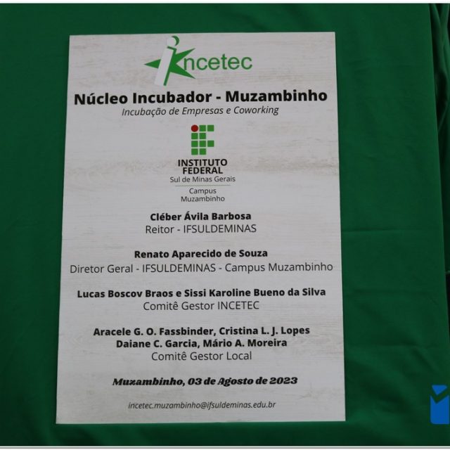 Nesta quinta-feira, 03/08/23, foi realizada a tão esperada inauguração do Núcleo Incubador de Empresas e Coworking do Instituto Federal do Sul de Minas Gerais – Campus Muzambinho.