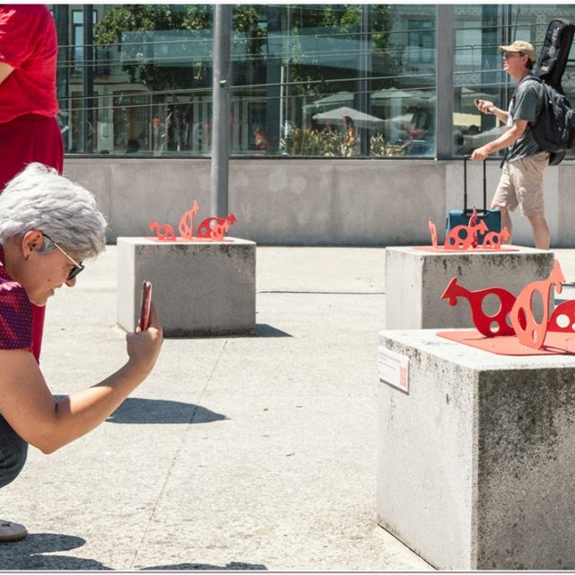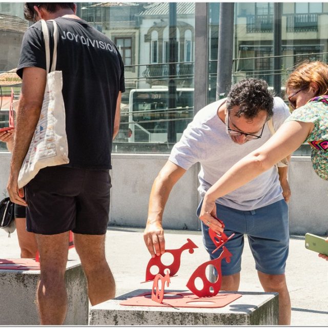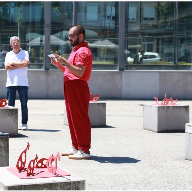 No passado dia 30 de junho, o artista brasileiro Bruno de Almeida, mestrando em Design de Produto na Faculdade de Belas Artes do Porto e que vive em Portugal desde 2021, realizou a ativação de sua obra intitulada “Distribuição de Galinhas” no Largo da Estação de Campanhã. Resultado de sua residência artística no DES/ORIENTE – projeto com apoio do Criatório da Câmara do Porto -, o artista propõe uma dinâmica de distribuição de esculturas em madeira pintada em vermelho ao público que estava presente na sua apresentação.