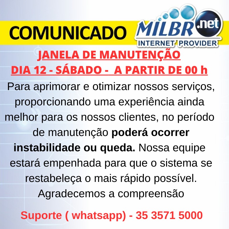 Mais Artigos DestaqueEducaçãoNossa CidadeParceiros Papelaria Faz de Conta oferece material escolar com etiqueta personalizada grátis em Muzambinho DestaqueObituário Faleceu aos 66 anos a Sra. Cláudia Aparecida Ciardella Cozinha e CulináriaDestaqueNossa CidadeParceiros Final de Semana com as Deliciosas Pizzas da Pizzaria LaDiLá!DestaqueNossa CidadeParceirosMilBr comunica possível queda de internet na madrugada deste sábado, 12/08 Redação11 de agosto de 20231min0Janela de Manutenção, dia 12 de agosto, sábado à partir de 00hSuporte – WhatsApp: (35) 3571-5000 Post Views: 644