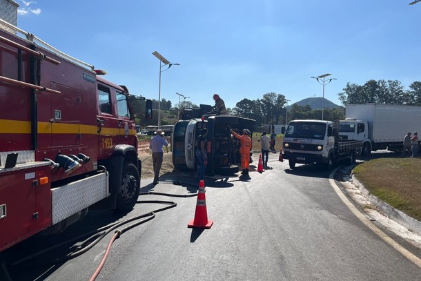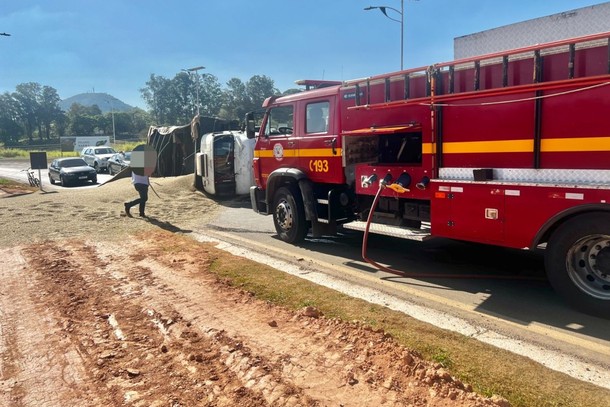 Uma guarnição de Bombeiros Militar permanece no local com a viatura de combate a incêndios para prevenção a acidentes. A ocorrência contou com apoio da DIMUTRAN, da Secretaria de Obras e da Exportadora de Café Guaxupé.