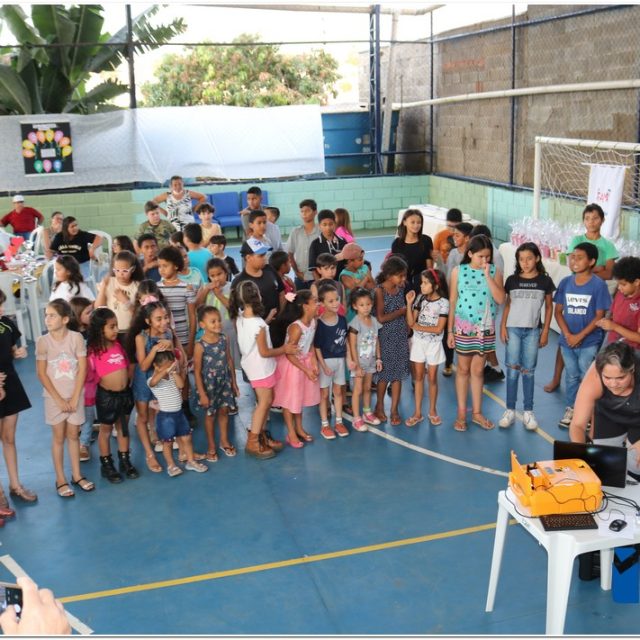 A quadra da FAM foi cuidadosamente decorada para o evento especial, que contou com a participação de crianças e suas famílias. A programação incluiu contação de histórias, apresentação teatral e uma palestra inspiradora sobre “Gratidão”. Essas atividades não apenas celebraram o 33º aniversário da FAM, mas também destacaram a importância de valores fundamentais para o crescimento e desenvolvimento das crianças.
