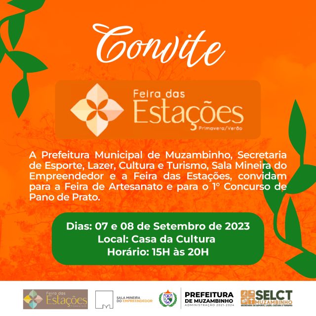 Mais Artigos DestaqueMensagens O Muzambinho.com deseja um Feliz Natal a todos os nossos internautas DestaqueEventos e FestasLazerNossa CidadeParceiros Sagrada Familia 11 anos – 20/12/25 DestaqueEconomiaPolítica Consumidor pagará menos na conta de luz em janeiro; saiba por quêDestaqueNossa CidadeParceirosDias 7 e 8 de Setembro – Feira das Estações em Muzambinho Redação6 de setembro de 20231min0 Na Casa da Cultura - das 15h às 20h - Venha Conferir !!! Entrada Gratuita. Post Views: 854AromasArtesanatoArtesãoBolsasCrochêfeira