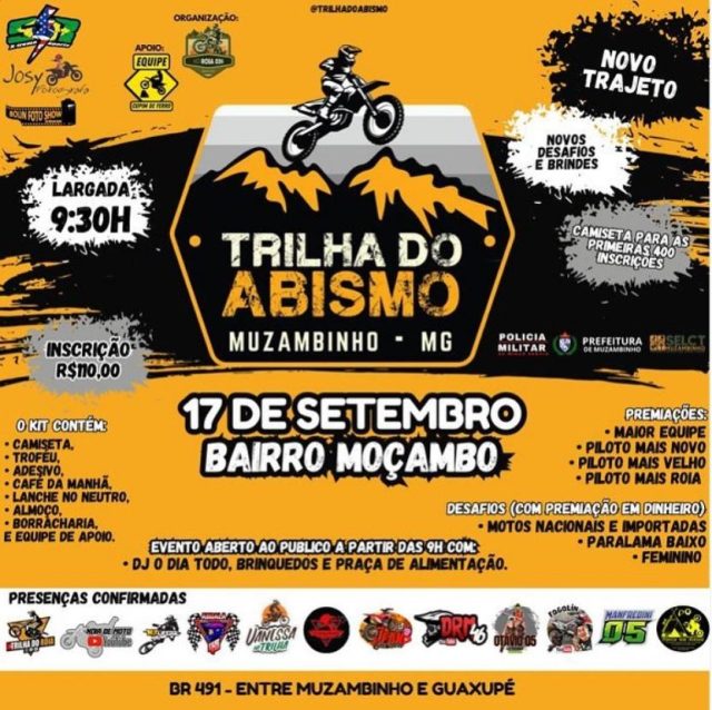 No último domingo, dia 17 de setembro de 2023, o município de Muzambinho, localizado no sul de Minas Gerais, foi palco de um evento que atraiu a atenção de aventureiros e entusiastas de trilhas com Motos de toda a região: a segunda edição da Trilha do Abismo. Com partida no Bairro Moçambo às 10h, os participantes enfrentaram um desafio de 60 quilômetros, percorrendo estradas, matas, cafezais, pastagens e morros que testaram suas habilidades e resistência física.