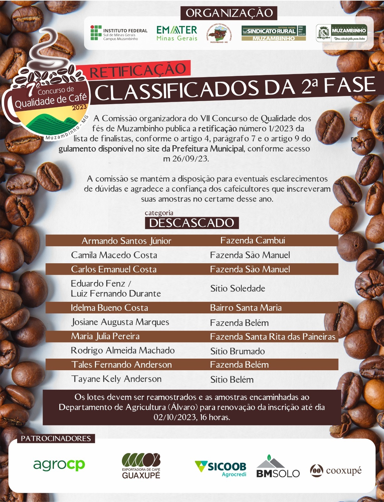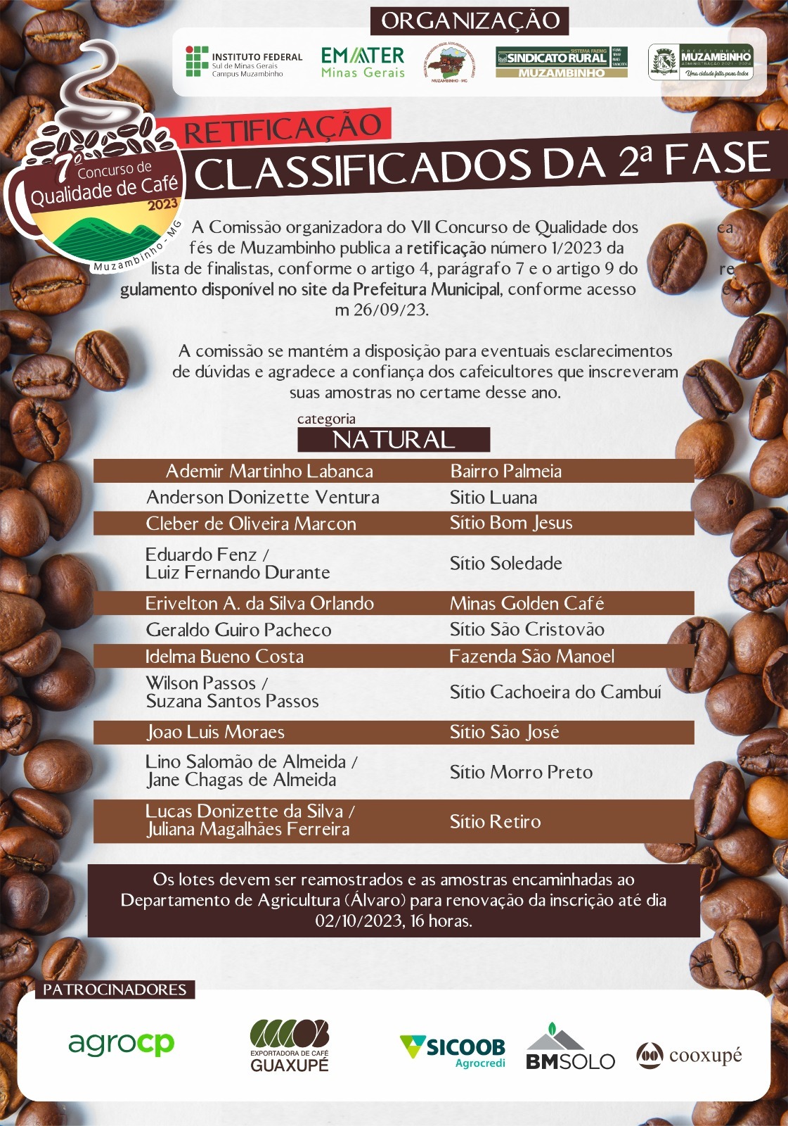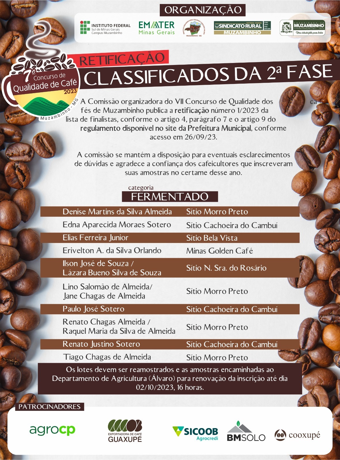 Mais Artigos AgronegócioEconomia Preço da cebola sobe mais de 34% e lidera altas em Minas Gerais DestaqueEconomia R$ 33,5 bilhões: abono salarial será pago a quase 27 milhões de pessoas; veja datas DestaqueExecutivoNossa CidadeParceirosSaúde Muzambinho amplia frota da saúde com a entrega de 11 novos veículosAgronegócioDestaqueNossa CidadeParceirosRETIFICAÇÃO – Classificados da 2ª fase do VII Concurso de Qualidade dos Cafés de Muzambinho Redação29 de setembro de 20231min0Os lotes devem ser reamostrados e as amostras encaminhadas ao Departamento de Agricultura para renovação da inscrição até o dia 02/10/2023, 16 horas. Post Views: 677cafeConcursoConcurso de CaféQualidade