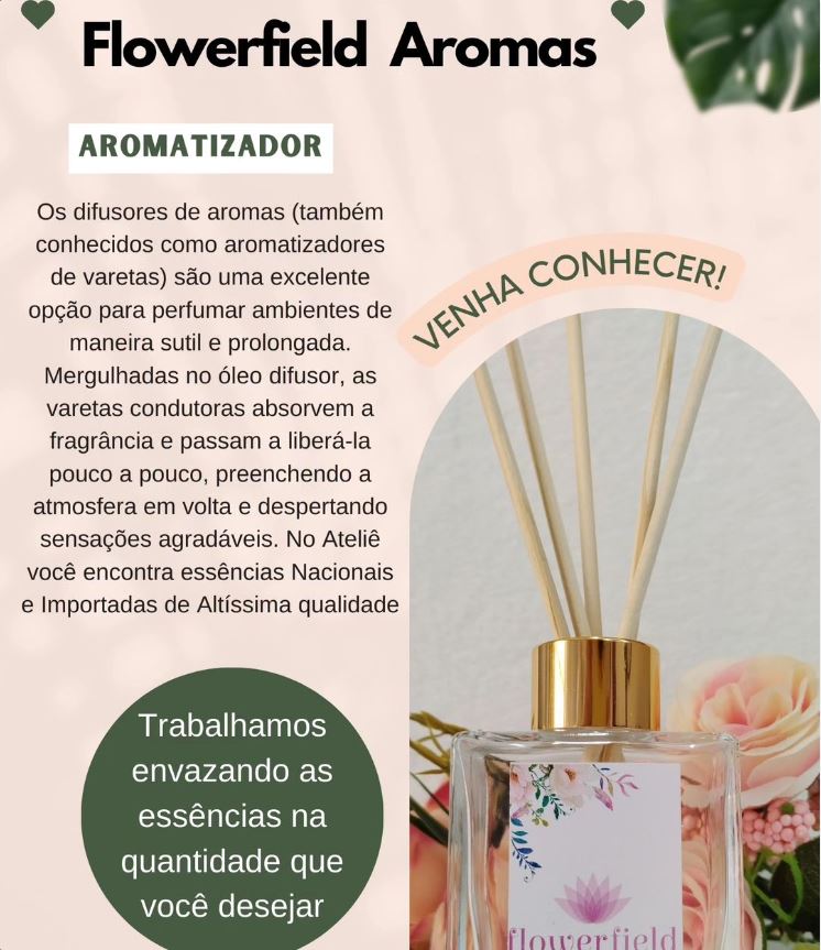 As fragrâncias têm o incrível poder de transformar ambientes e estados de espírito. Com a Flowerfield Aromas, você pode tornar seus espaços mais aconchegantes, convidativos e confortáveis. Oferecemos um atendimento personalizado aos nossos clientes, visando não apenas satisfazer, mas também fidelizar. A cada compra, apresentamos novas opções para renovar e aprimorar seus ambientes.