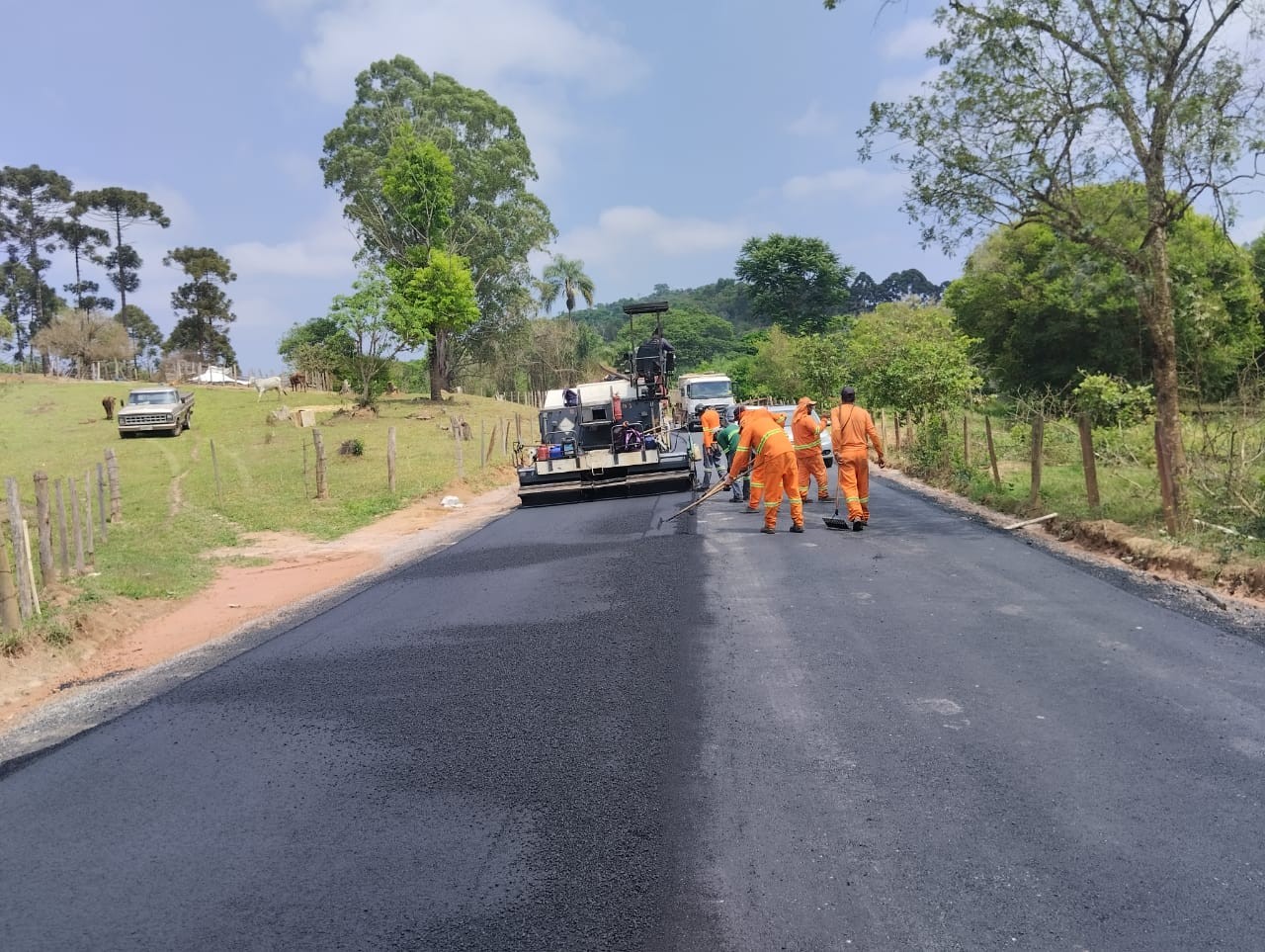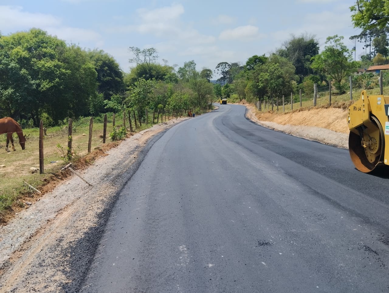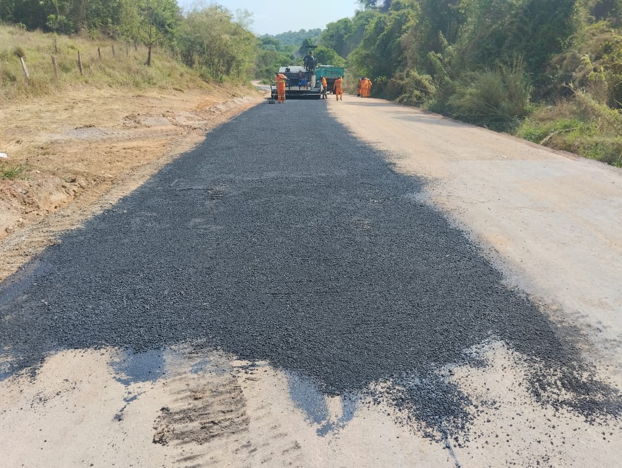 No final de semana e durante esta semana as obras de pavimentação com massa asfáltica e preparação da base para receber a massa asfáltica teve ótimo desenvolvimento, nas fotos a movimentação dos últimos dias de trabalho de 1 a 4/10/23.