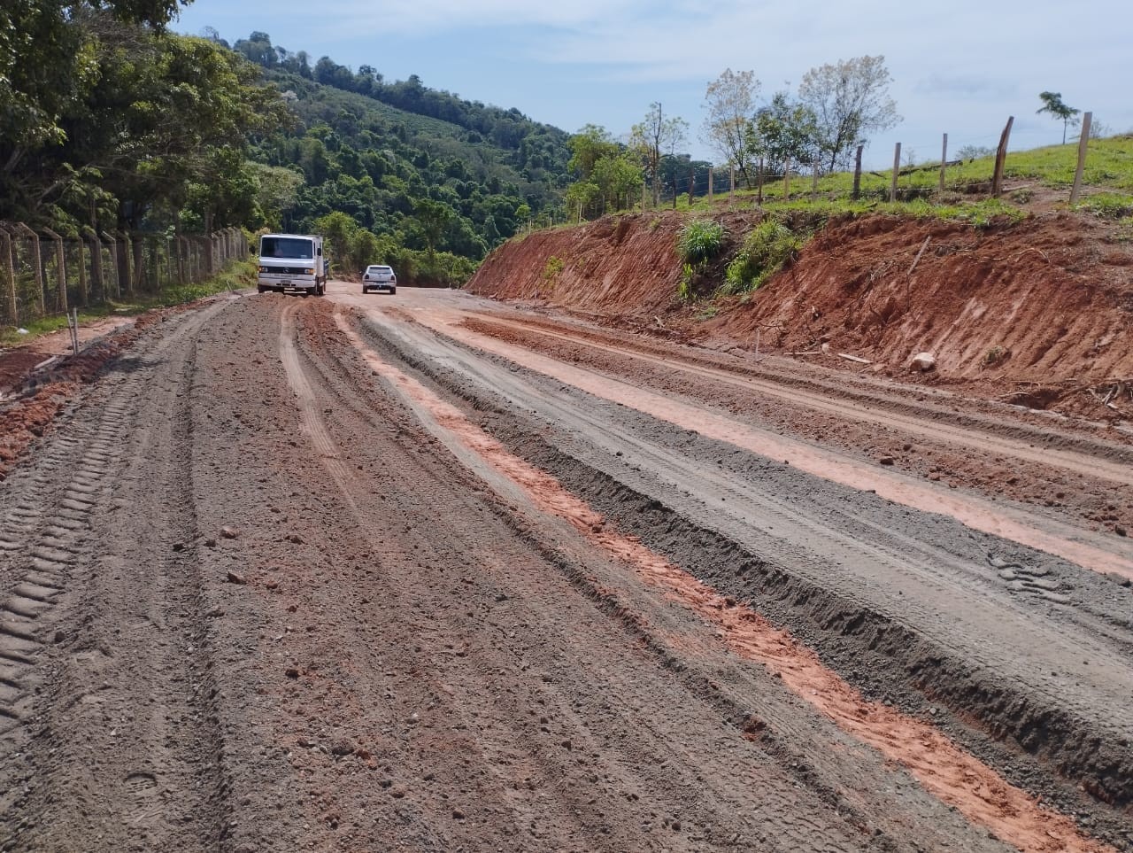 Obras na Estrada Muzambinho a Caconde tem bom desenvolvimento mesmo com chuva