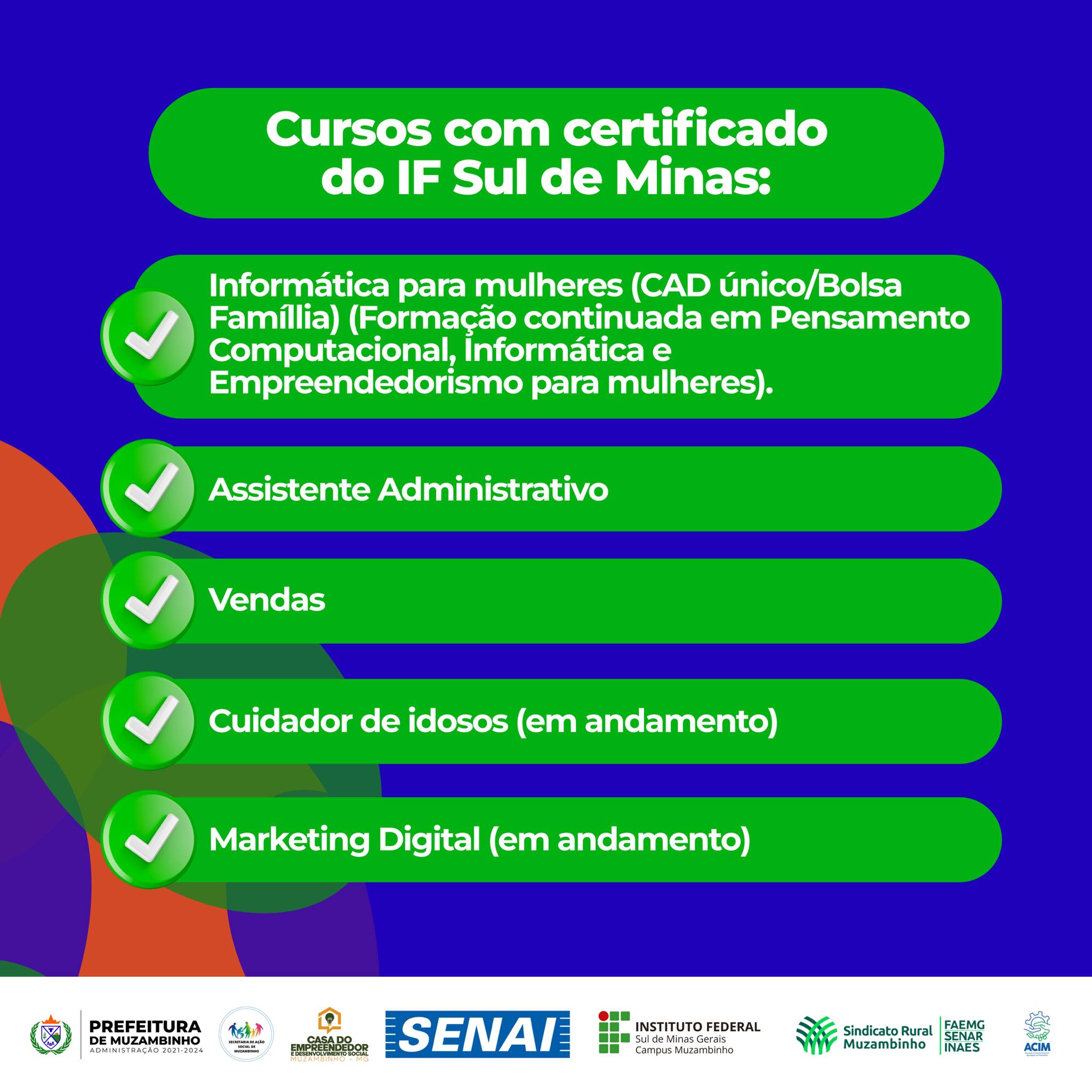 Para obter mais informações sobre o programa “Qualifica Muzambinho” e como se inscrever, os interessados podem entrar em contato com a Secretaria de Assistência Social ou a Casa do Empreendedor.