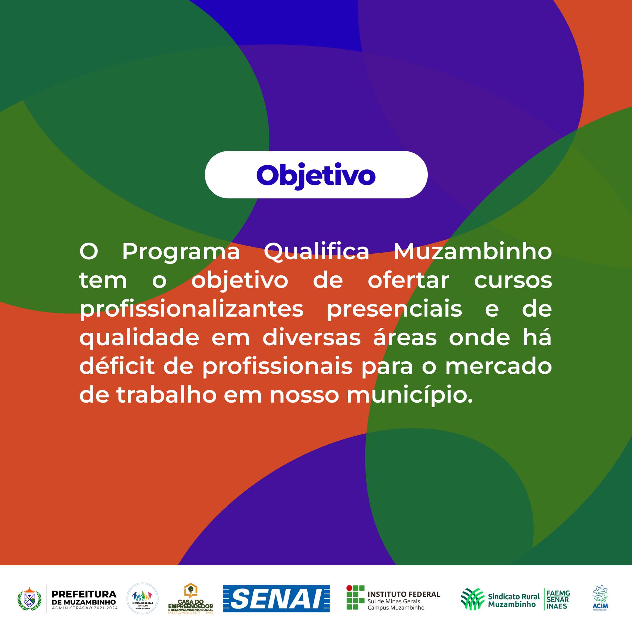 Com o intuito de preparar os habitantes de Muzambinho para o mercado de trabalho local e promover a inovação, o “Qualifica Muzambinho” tem como metas principais o desenvolvimento de competências e a criação de oportunidades para a comunidade. O programa está alinhado com a visão de transformar Muzambinho em um centro de inovação e crescimento econômico.