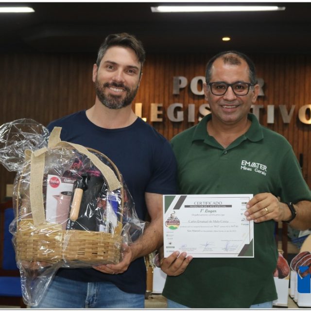 Em um evento marcante realizado no Plenário da Câmara Municipal, nesta quarta-feira, 01/11, a comunidade cafeicultora de Muzambinho se reuniu para reconhecer os melhores cafés produzidos durante a Safra 2023. O 7º Concurso de Qualidade de Café de Muzambinho atraiu 100 amostras inscritas de 70 talentosos cafeicultores e cafeicultoras, destacando o crescimento contínuo da participação feminina na cafeicultura. É notável que todos os participantes alcançaram uma pontuação acima de 80 pontos, evidenciando o compromisso coletivo com a produção de cafés especiais.