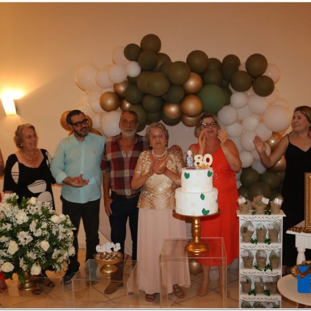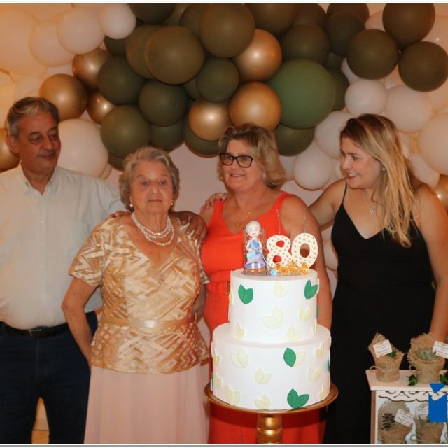 Neste sábado, dia 4 de novembro de 2023, o espaço Faça Festas foi o palco de uma emocionante e alegre confraternização em comemoração aos 80 anos de vida de Marileni Tardeli. Durante todo o evento, Marileni interagiu com cada convidado, percorrendo mesas, dançando e registrando os momentos memoráveis com registros fotográficos.