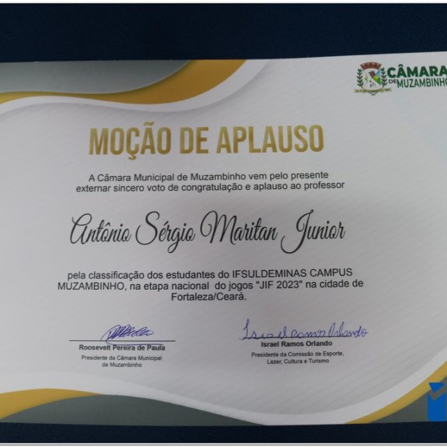 Os alunos/atletas e professores foram agraciados com os merecidos cumprimentos por sua participação exemplar e conquista notável de várias medalhas, o que solidifica e enaltece a importância do esporte na cidade. A iniciativa da Câmara de Vereadores reforça a valorização do empenho e dedicação demonstrados pelos talentosos representantes do IF Campus Muzambinho, fortalecendo assim o espírito esportivo e a importância do apoio contínuo aos jovens talentos da região.